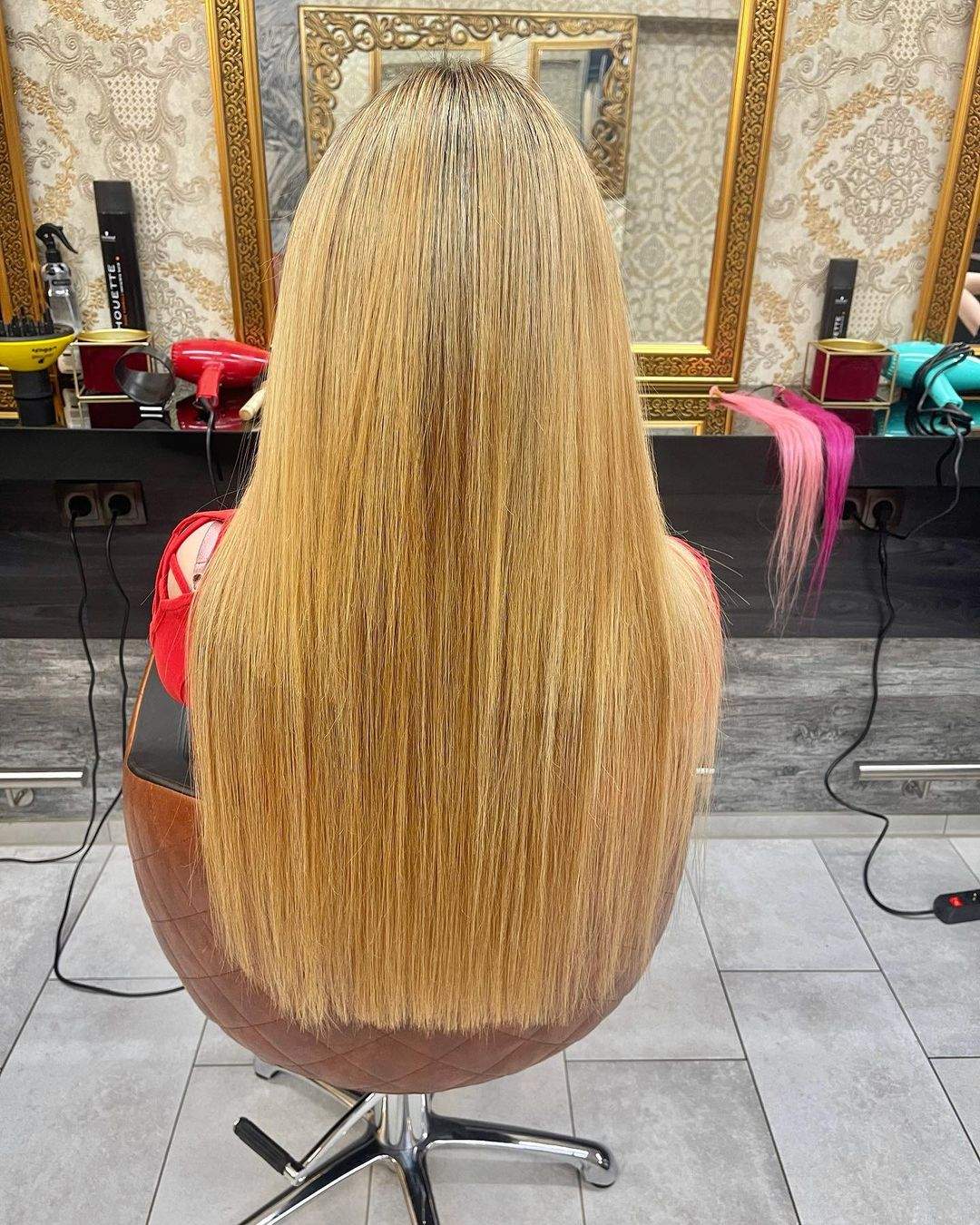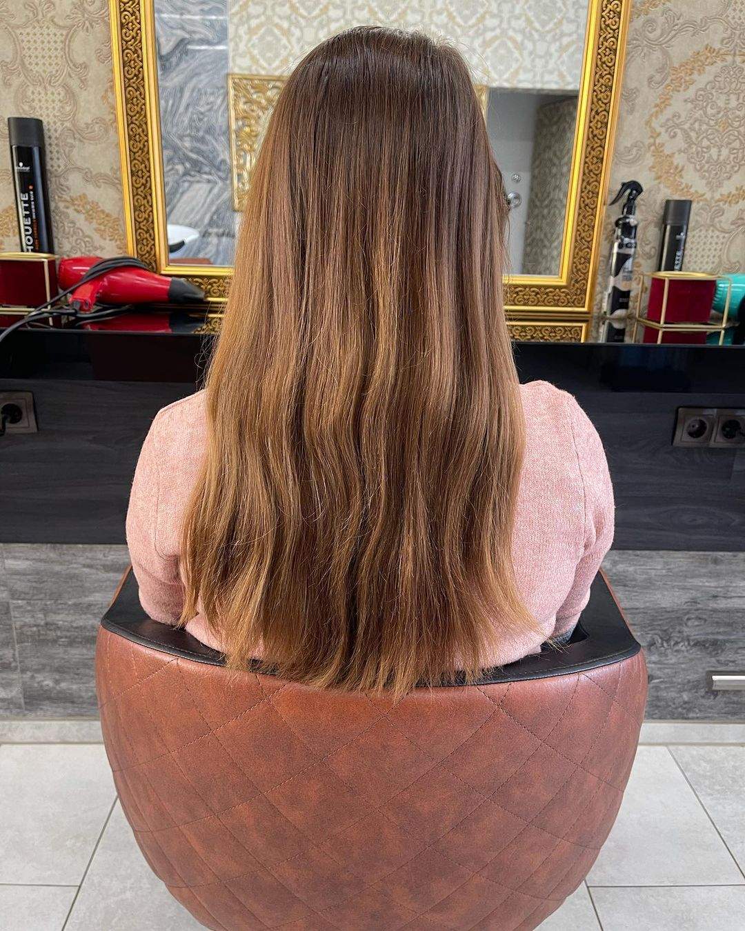 semi-permanente Haarglättung, sie ist physikalisch und dadurch weniger schädlich für die Haarstruktur.